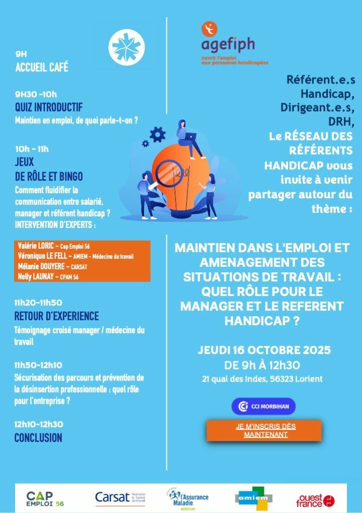 Organisé par l’Agefiph Bretagne en partenariat avec Cap emploi 56, la Carsat, l’Assurance Maladie, l’Amiem et Ouest France.