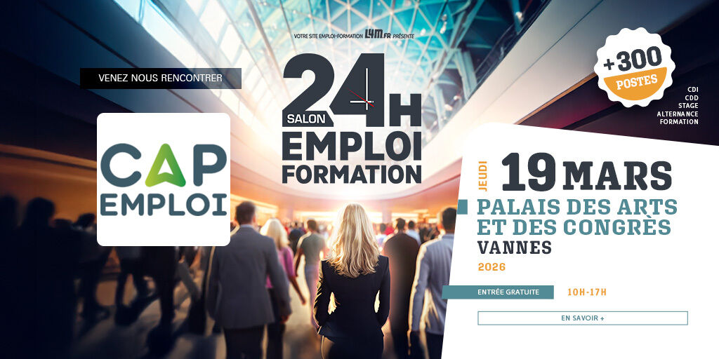 Venez nous rencontrer le jeudi 19 mars au palais des arts et des congrès de Vannes pour le salon "24 Heures pour l'Emploi et la Formation".