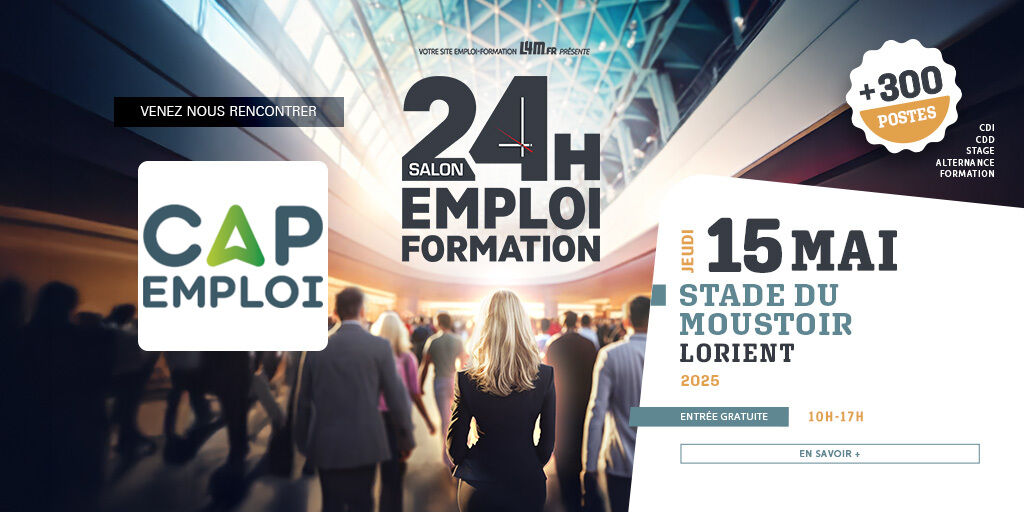 Retrouvez l'équipe Cap emploi 56 le jeudi 15 mai à Lorient pour le salon "24 Heures pour l'Emploi et la Formation".